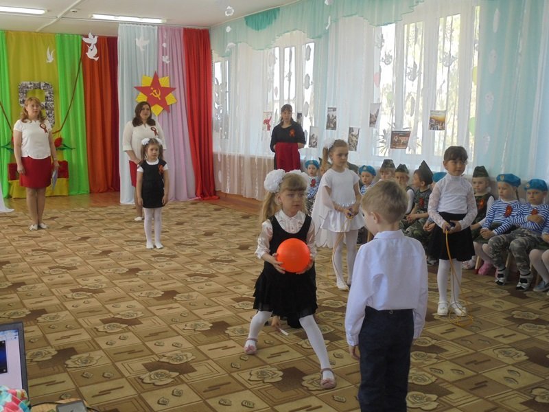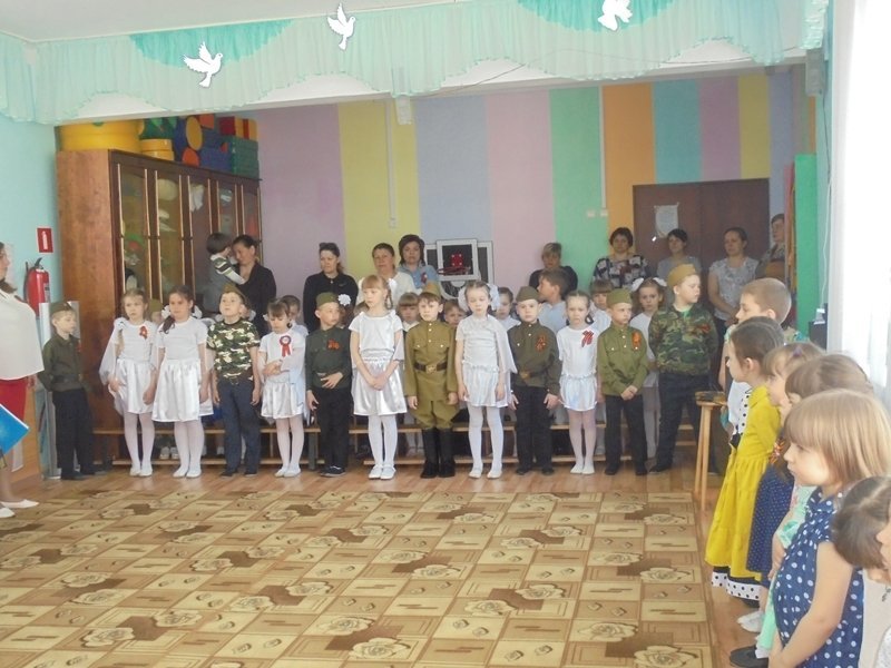 А 8 мая, в канун празднования 74 годовщины со дня Великой Победы, в зале детского сада прошёл музыкально – тематический досуг под названием «Никто не забыт, ничто не забыто!». Танцы, стихи, литературные композиции, песни и, конечно же, «Минута молчания» в честь павших воинов, которые ценой своей жизни завоевали для нас счастливую мирную жизнь. Никого не оставил равнодушным танец «Журавли» в исполнении воспитанников подготовительной группы «Малинка», ещё раз доказав, что этот Великий праздник, действительно, со слезами на глазах. Победный май живёт в наших сердцах!
