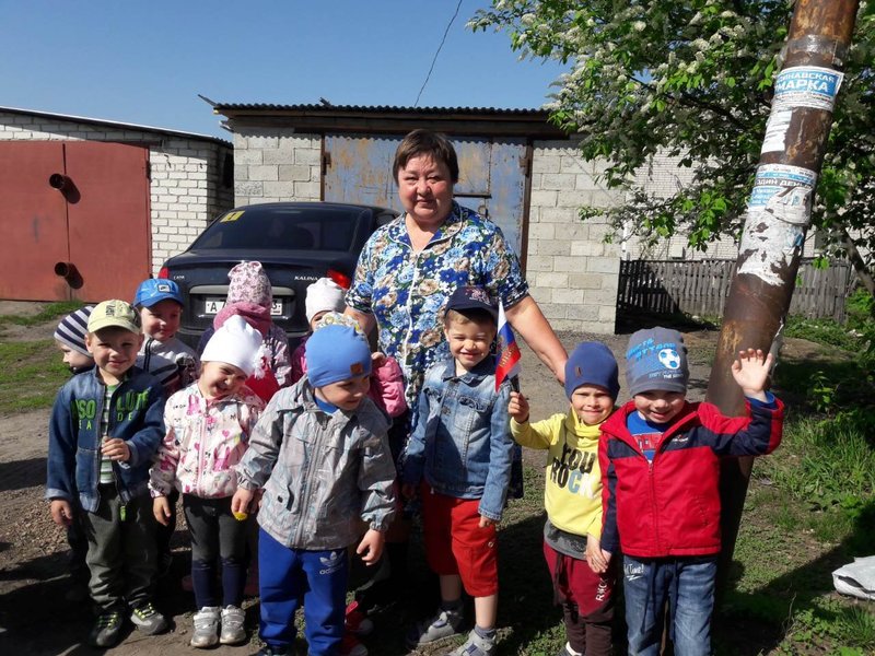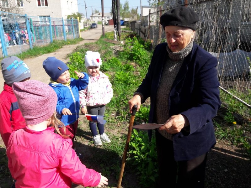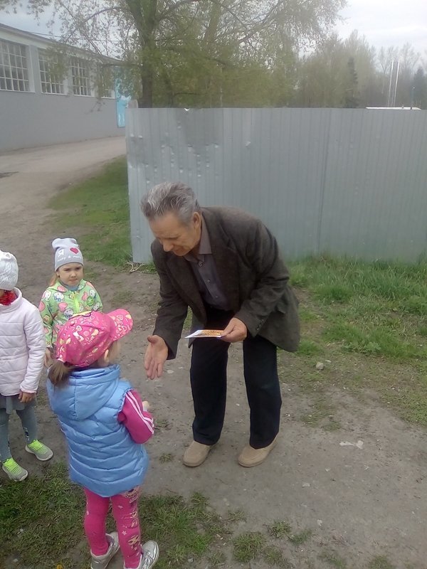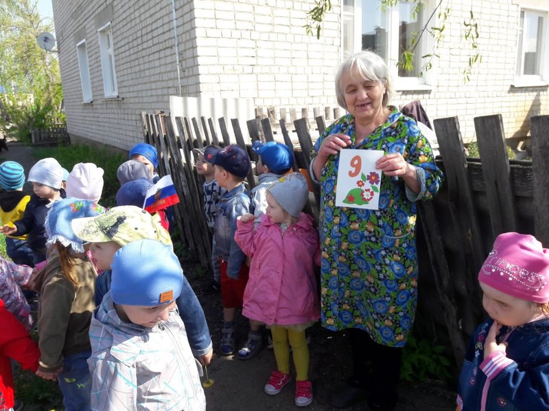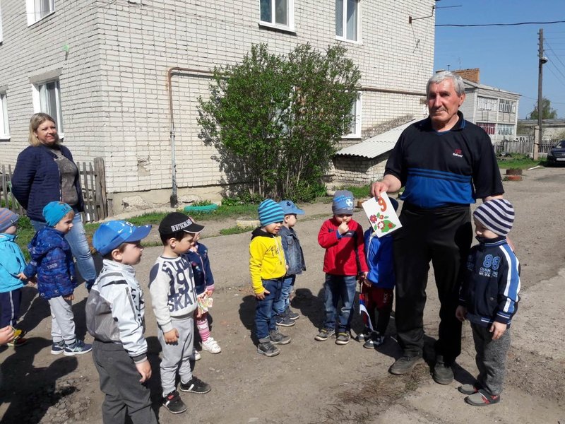 7 мая в акции «С Днём победы» приняли участие воспитанники детского сада вместе со своими воспитателями. Они подготовили поздравительные открытки с пожеланием мирного неба над головой, здоровья и долгих лет жизни и вышли на улицы посёлка поздравлять жителей с наступающим праздником.