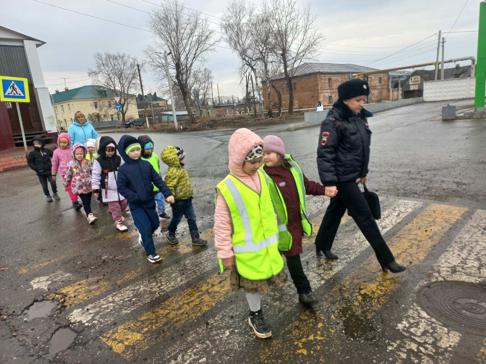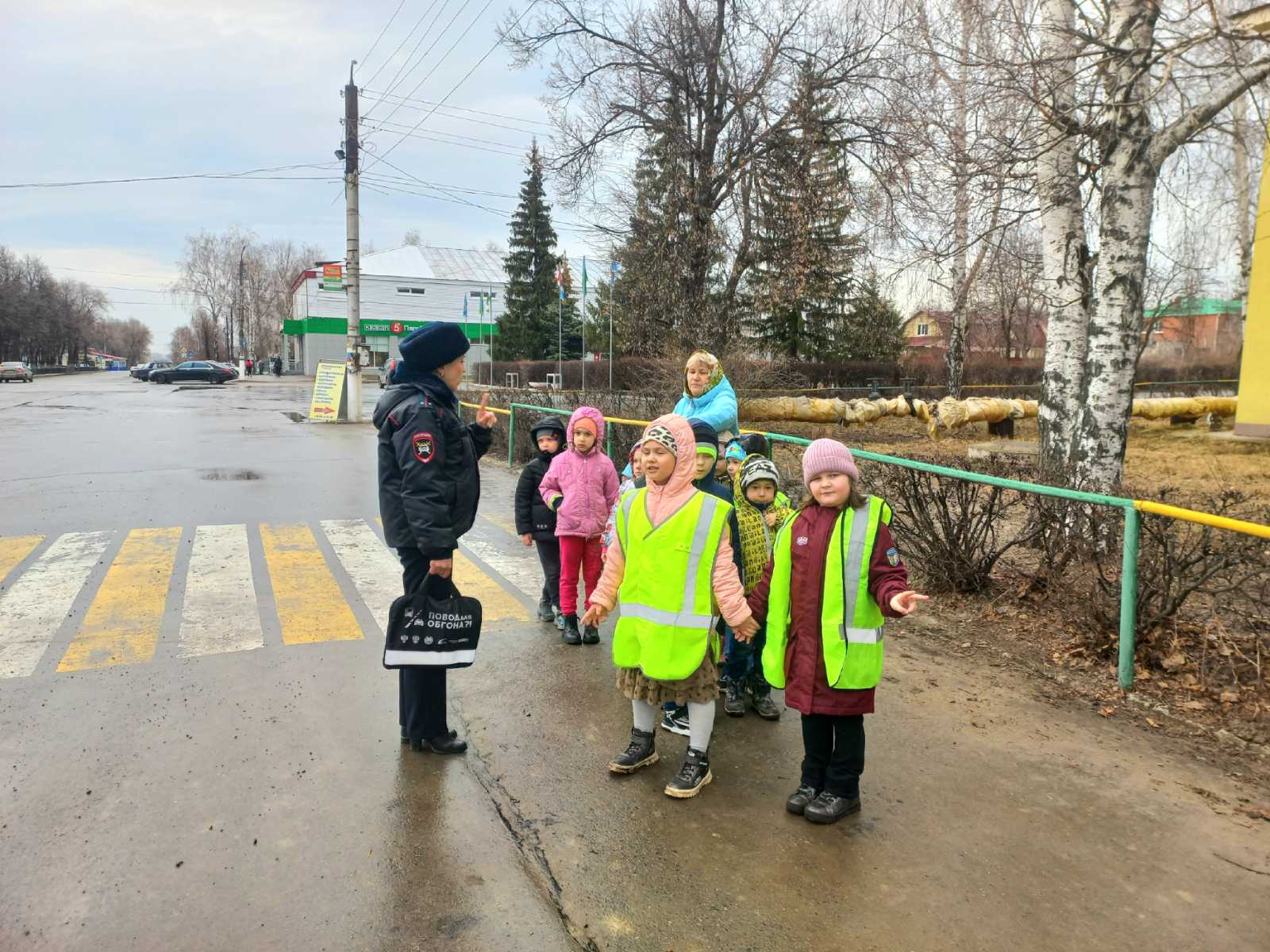 Сегодня в погожий весенний день вновь состоялась встреча с инспектором ГИБДД. Дети группы "Ромашка" совершили экскурсию на проезжую часть и закрепили правила дорожного движения.