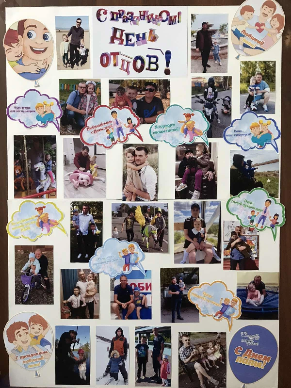 Наши детки тоже поспешили порадовать своих пап, и приготовили им подарки. Это открытки и коллаж из фотографий своего семейного альбома. Такие разные, но очень счастливые, ведь счастье - это семья, любимая семья!!!